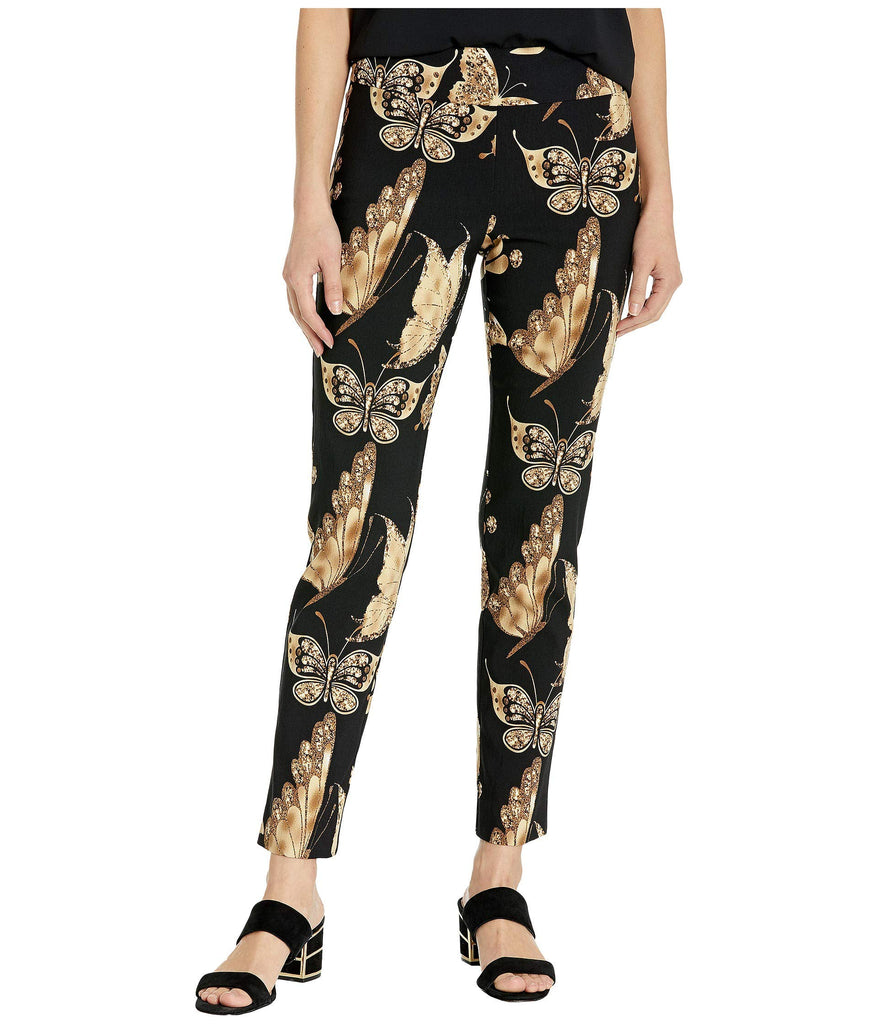 Krazy Larry Women's Pull on Ankle Pants - Gold Butterfly